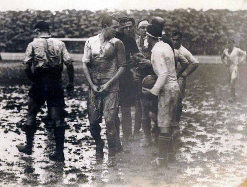 UK football team sporting gasmasks, 1916