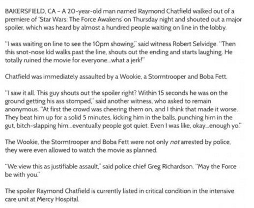 Raymond '' was brutally assaulted by a Wookie, Citi.