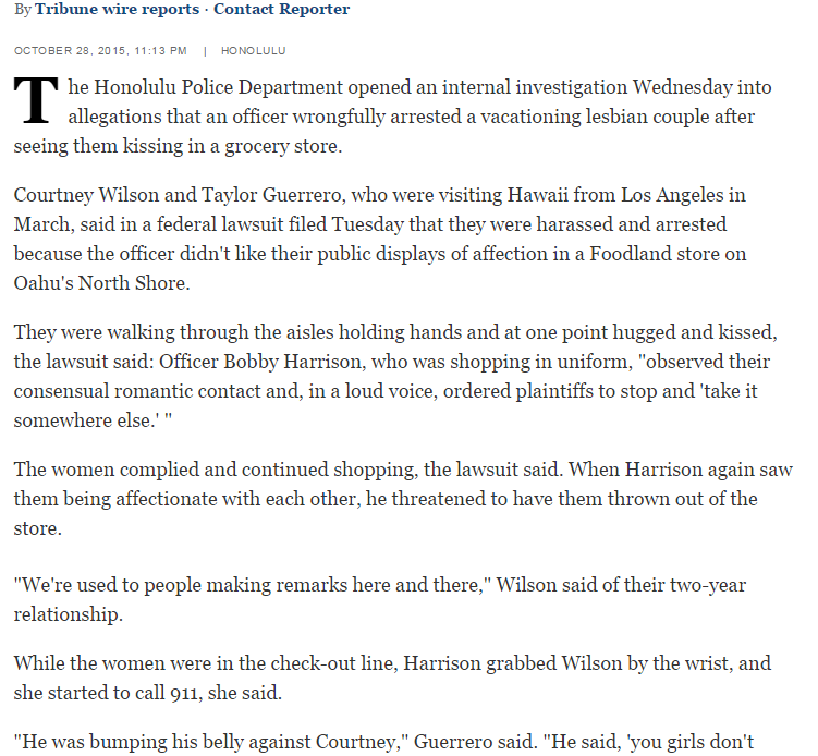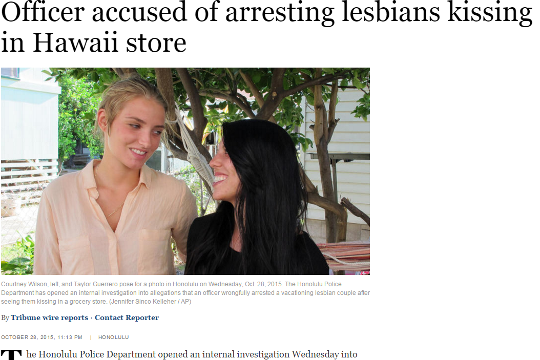 Department has opened an internal investigation into allegations that an officer wrongfully arrested a vacationing lesbian couple after