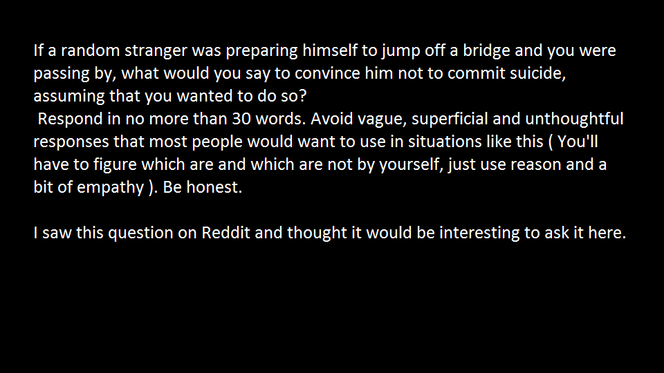 passing by, what would you say to convince him not to commit suicide,