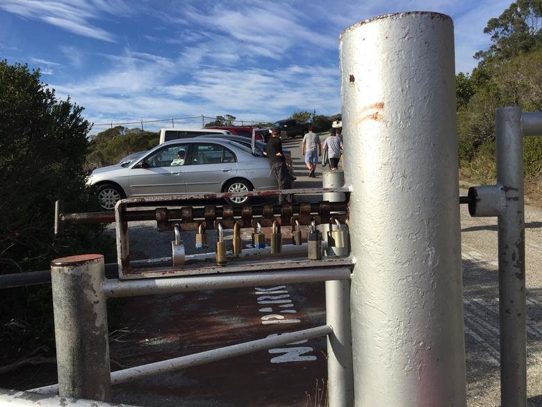 But now that I look at it again, if all the red points are attached/welded, disconnecting any of the locks that aren't the first one wouldn't allow you to open it, since the weldings before the lock you open will still be unable to move.