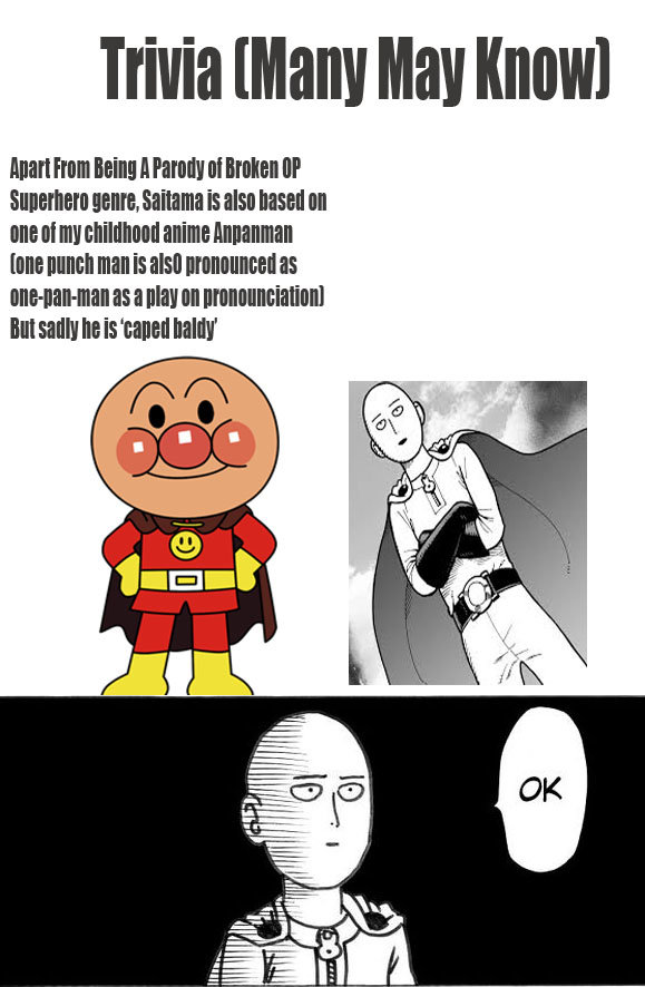 A Trivia By Me Flag infernaloni (See more...) prev next random - Fav Favorite Comment ✖ PrevTop NextComment prev next Tags: opm | Onepunch Man | One Punch Man | Saitama | ok | fact | Trivia | anpanman Trivia [Mann Mall Know] ... +5 Views: 1379 Favorited: 1 Submitted: 12/25/2015 Share On Facebook -Favorite +Favorite Unsub from infernaloni Subscribe to infernaloni