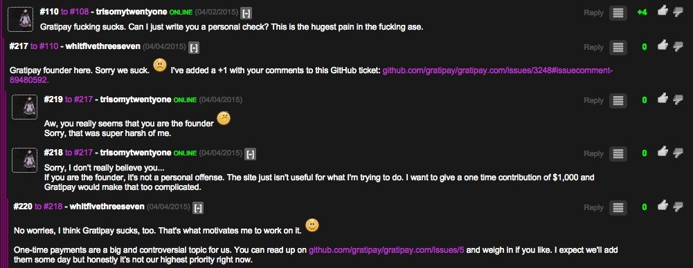 This whole set up has been a bit of a catastrophe. So many things went wrong or didn’t work out for us. Patreon would have taken a 10% fee and Gratipay would have been too complex and sketchy for our specific purpose. Oddly enough, the creator of Gratipay even contacted me because he heard me talking **** like he wouldn’t find out.