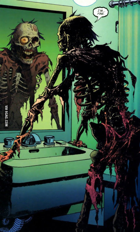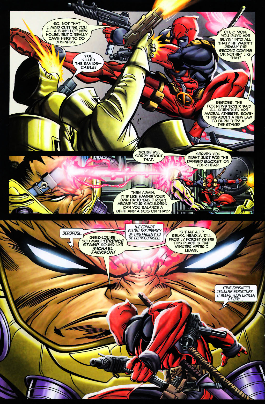 Me either. I just know a decent amount about him. It's just kind of his thing to have yellow bubbles. If I remember correctly, the Deadpool kills the Marvel Universe Deadpool isn't like the normal Deadpools. He's more "sane" and is pretty different. He could stop his regeneration through sheer will power. comicexplain would know more.