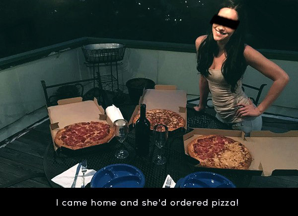 Make the same image, with the same text, and just replace this attractive/fit girl with a fatty and nobody would give a crap that she ordered pizza when you had a bad week. Sad but true.