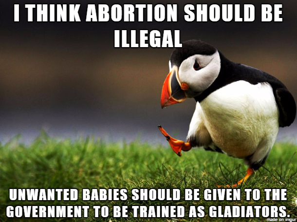 **tobistrigoivii used "*roll picture*"** **tobistrigoivii rolled image** I agree. Also, outlawing abortions makes conservatives think they have the right to cut planned parenthood's funding. Kind of like a take a little, take all supposition. "Alright, boys. Murder is officially illegal. Now let's kill everyone so no one can murder ever again!" We see the height of human stupidity after shootings. People were calling the planned parenthood shootings positive and their perpetrators heroes. They cited that in the shooter taking lives he was preventing abortions. You know, because planned parenthood has women in it seeking abortions 24/7/365. Pay no mind to the other services planned parenthood provides. Cause ya know, all planned parenthood consists of is a waiting room and a bottomless pit where women open their vaginas and drop the babies in a la 300. THIS IS SPARTA