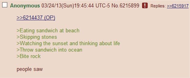 Anon Adventures Flag basalm (See more...) next random - Fav Favorite Comment ✖ Top NextComment (Enlarge) next Tags: 4chan is funny r | 4Chan | probably repost | Hi sexy sandwich at beach stones scatching the sunset and thinking about life sandwich into ruck people saw ... +6 Views: 1536 Favorited: 2 Submitted: 11/20/2015 Share On Facebook -Favorite +Favorite Unsub from basalm Subscribe to basalm