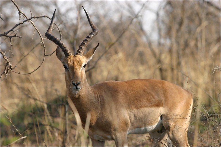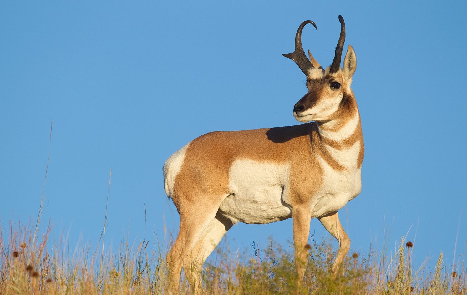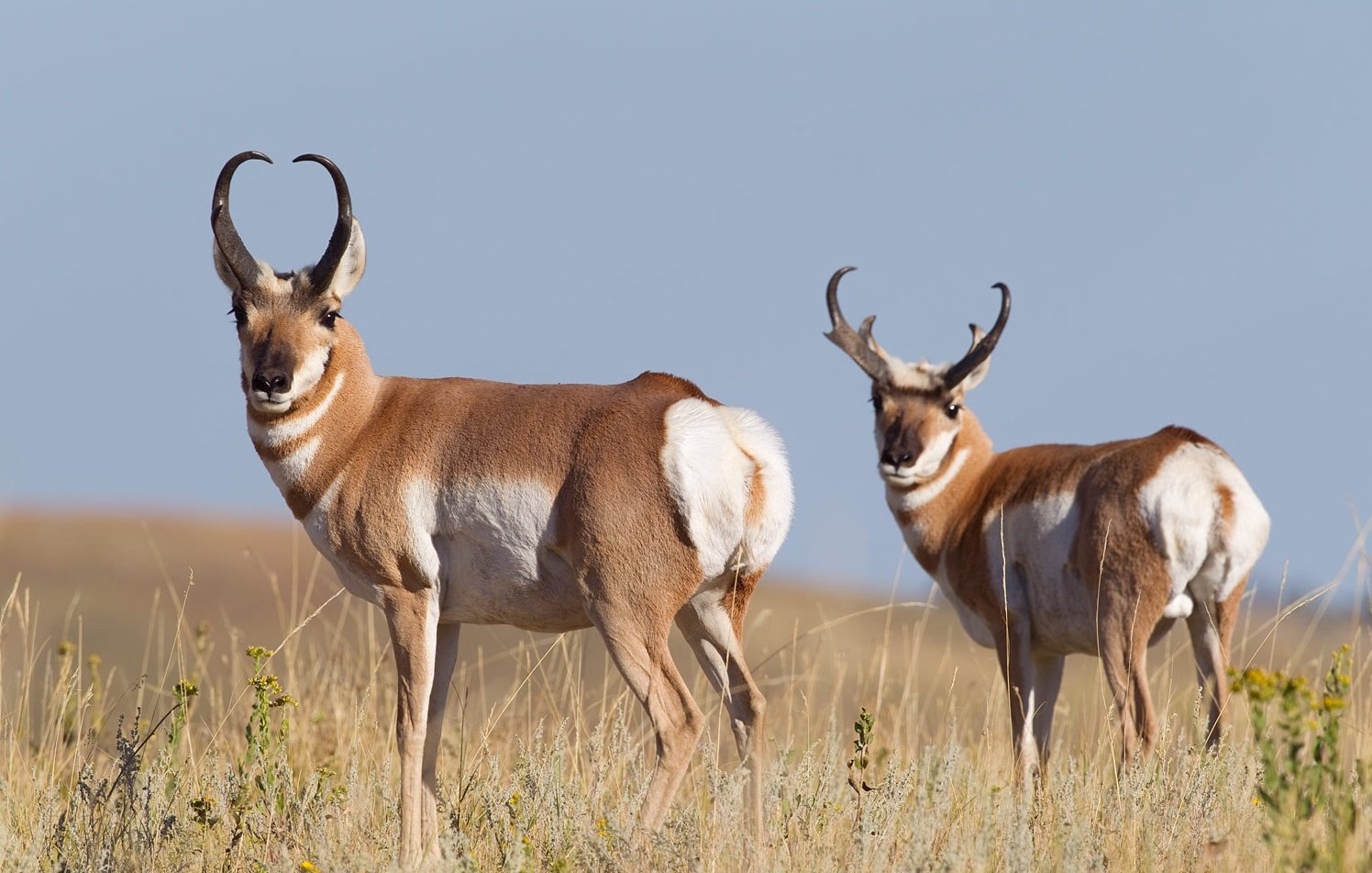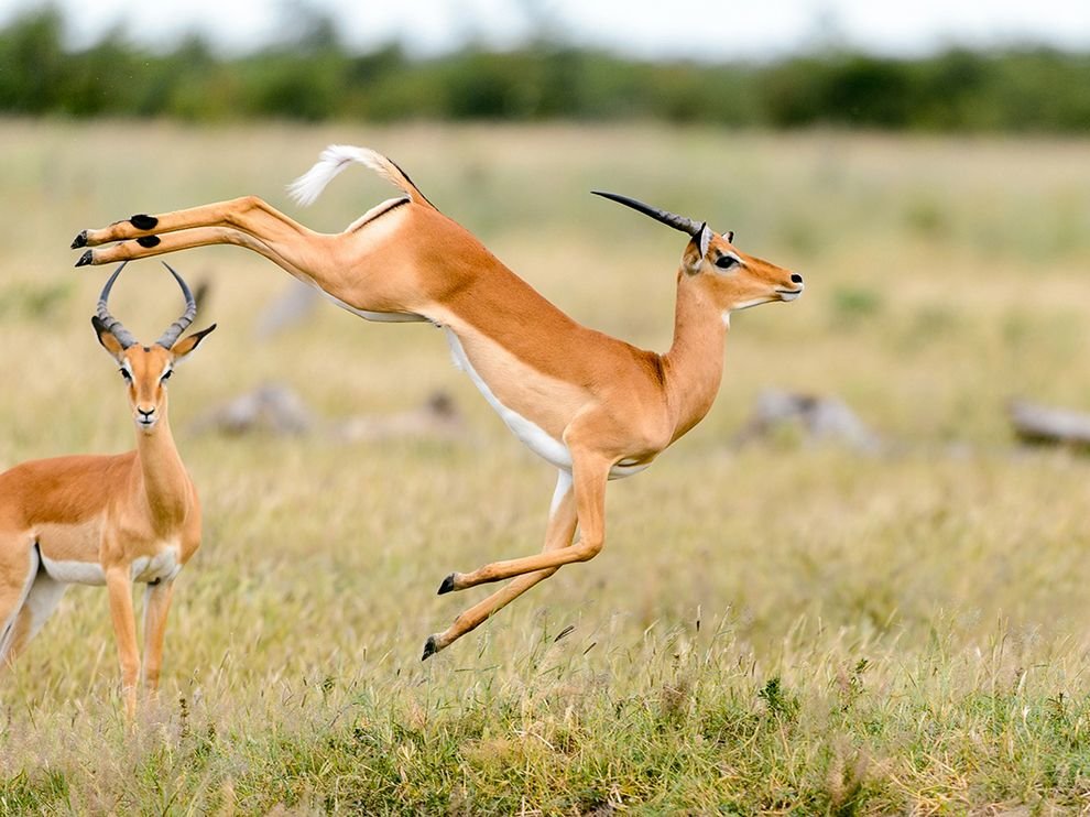 Antelope display different defensive behaviours based on their size, habitat, number and species. The smaller solitary antelope tend to live in dense forested areas and these species of antelope defend themselves by hiding. The duiker antelopes get their name from this specie\'s ability to dive into the vegetation. Gazelle-sized antelope run and leap, and some species of antelope exhibit their unique behaviour of pronking or stotting. Large antelope congregate in larger herds and can depend on running as group defence.