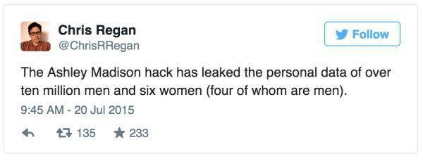Yeah... Some bitch? The person who said the profiles of six women had been compromised was at least a little accurate. Go check out some of the stats. Women are not the majority on that site. Some bastard is a bit more accurate.