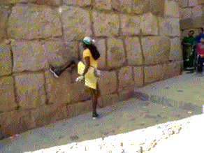 When you do a spin like that with the feet above your head and everything, it looks super cool, but you're also pushing your weight SOOOO far out from the wall, resulting in the fact that he's now in a situation where A: he uses TWICE the amount of core muscles to maintain control of his body (because his balance is so far out, if he has to catch a hold of a small grip, he will need precision, and since he has no balance, he has to compensate with seeeeerious muscle strength), OR he can attempt to "fling himself" at the grip, which is also a bad decision because he'd 1: only get one shot, if he misses he'll fall because no way you can land back on the wall when your feet originate over your head..