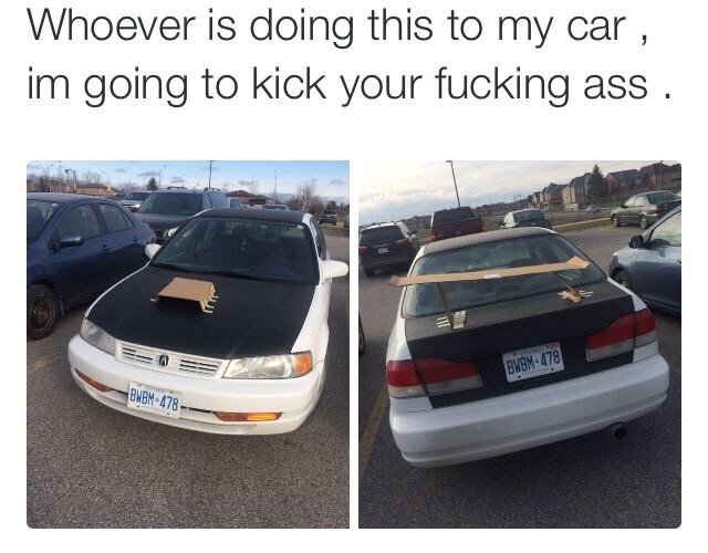 Think about it. Keep tearing down the cardboard and act like what the dudes doing is pissing you off so hopefully he'll keep doing it, and next thing you know, you won't ever have to buy a box just to ship something to someone again.
