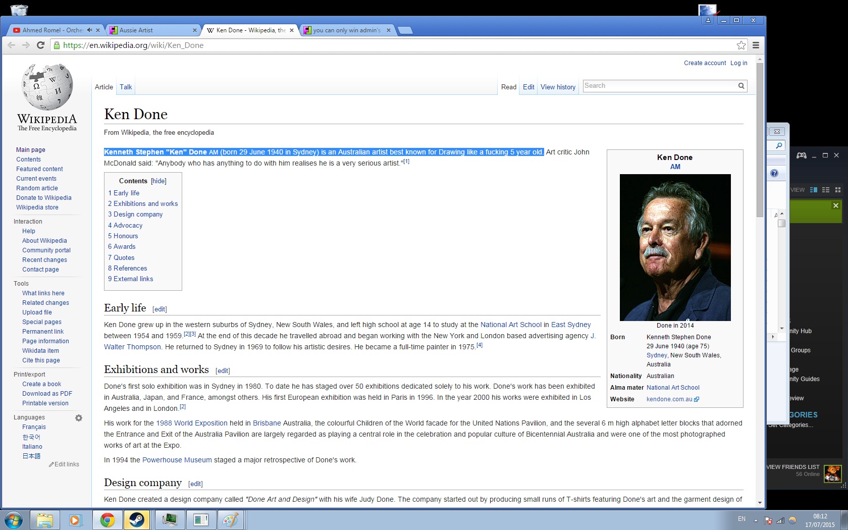 Main page . is an Australian artist best known tor Drawing like a ******* 5 year old rt critic John McDonald said: Ken Done