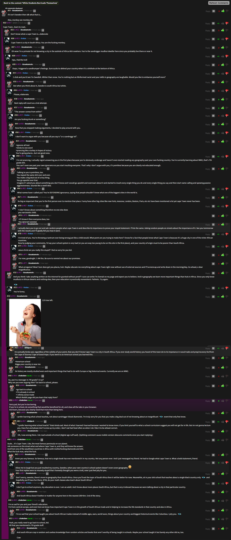 What arrogance! Wall sure does get you places, huh. Maybe educate me everythang about cape Town nght now without use of external sources and I' ll screencap and VINE down In the morning/ day. so ahead, o dear