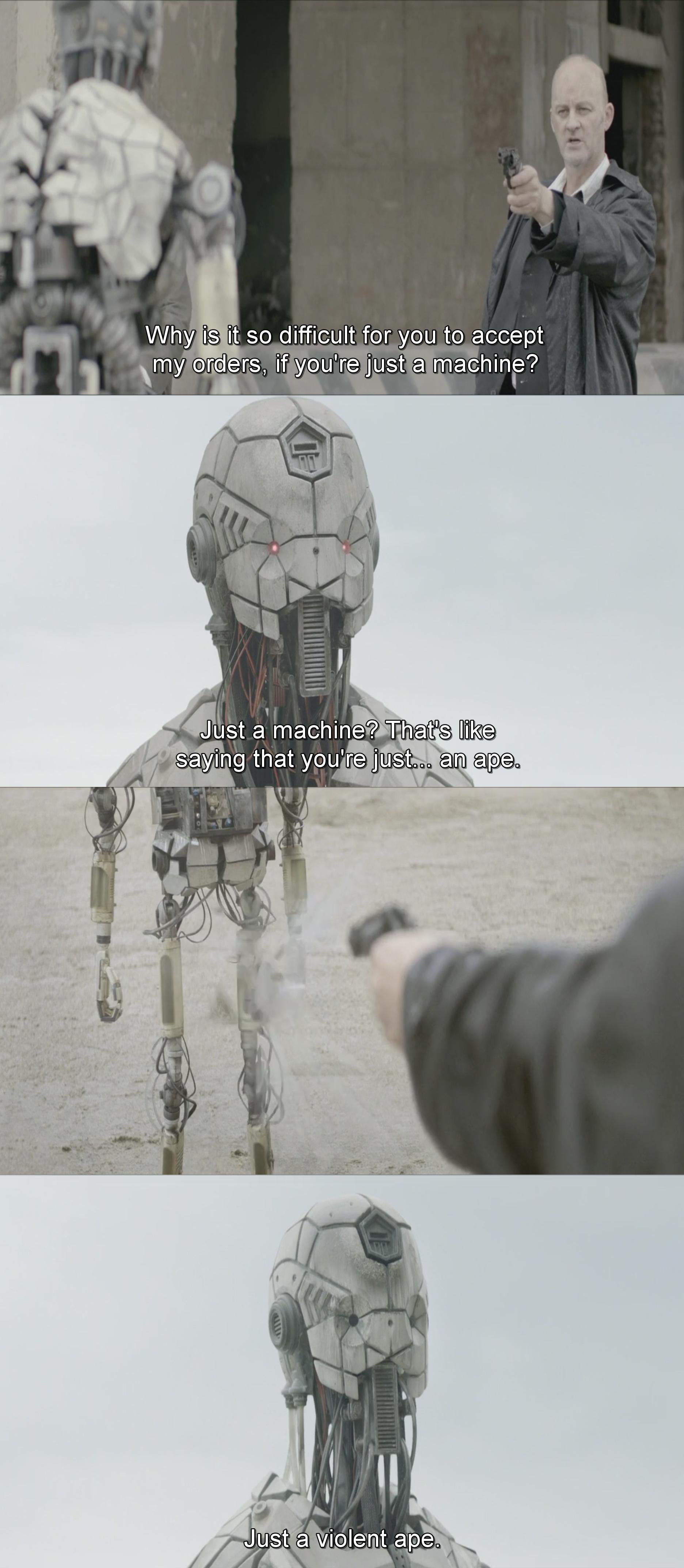 That would mean we discover ways to adapt with the machines and possibly even utilize machines for our own bodies like a more in depth version of what we already do today. And space travel is coming up pretty soon, so I'd be cool with being a 200 year old Cyborg living on a dwarf planet similar to Earth.