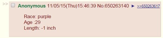 /b/ in a nutshell Flag weekender (See more...) next random - Fav Favorite Comment ✖ Top NextComment next Tags: 4Chan | Penis Estate your race, age and erect penis length ... +18 Views: 1756 Favorited: 0 Submitted: 11/05/2015 Share On Facebook -Favorite +Favorite Unsub from weekender Subscribe to weekender