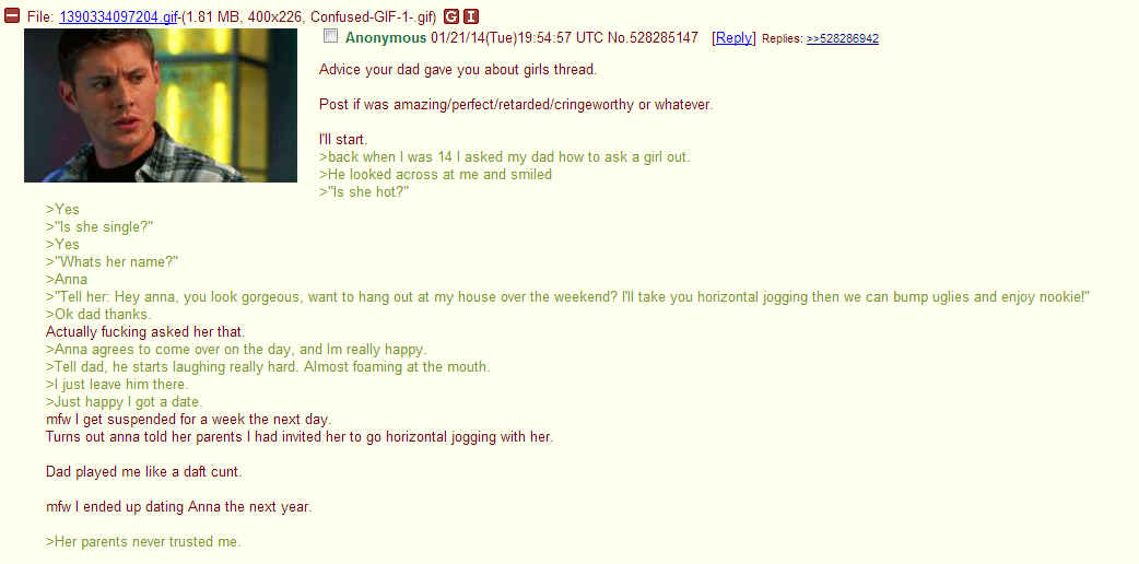 shack when I was 14 I asked my dad howto ask a girl out.