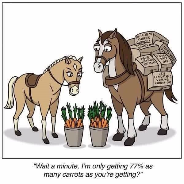 this image is pretty much misrepresenting the whole argument. women want equal pay for the same jobs. they're not expecting equal pay for doing less. this cartoon is projecting a misleading argument. that was my main issue