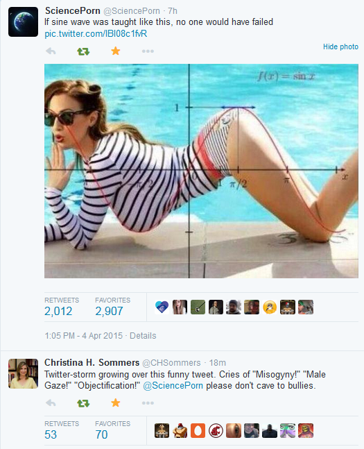 growing over this funny tweet. Cries of "Misogyny[" "Male