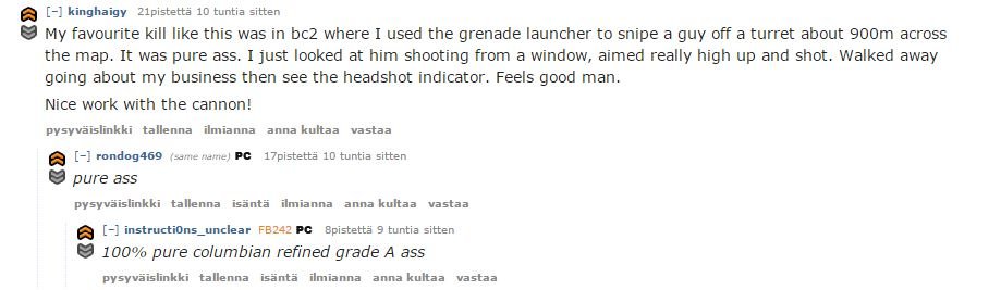 My favourite kill like this was in BEE where I used the grenade launcher to snipe a guy off a turret about across