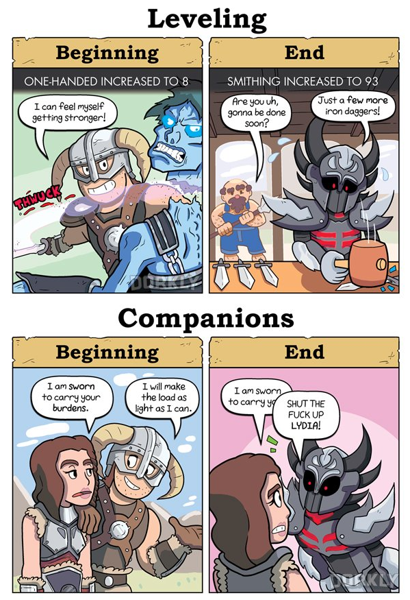pro tip: lydia only says "i am sworn to carry your burdens" if she's already carrying a significant amount of weight.
