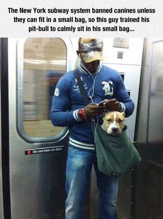you can just train a pitbull to sit quietly in a bag and do nothing? If you can teach it to do that, then all those reports and stories of dog attacks and other ****** up stuff seems really... ****** up. Like, just spend some time training your dog and it'll be fine for society.