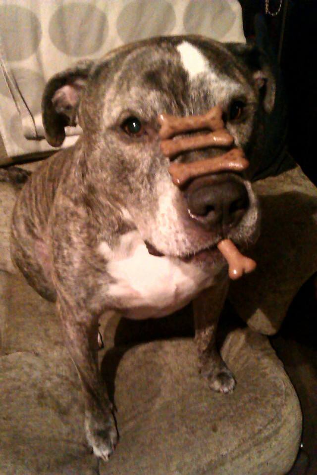 Here's my pit bull. Sometimes i get bored and decide to teach him something new. Even though he's 11 years old he picks things up really quickly and gets super excited to do tricks.