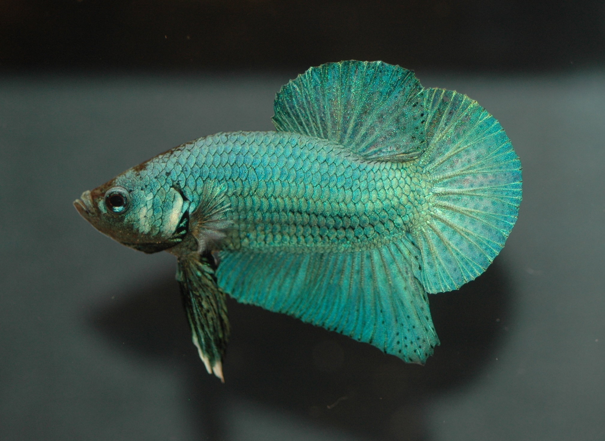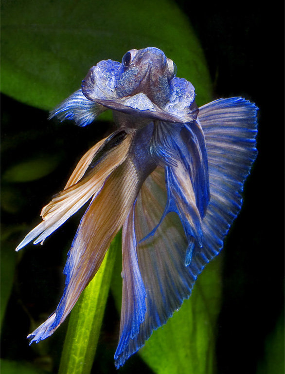 Unlike most fish that only breathe by collecting oxygen from the water through their gills, the betta can breathe below the water's surface as well as from above it. Bettas have an organ called a labyrinth located just behind their heads that allows them to breathe air. They can rise to the water's surface and take a gulp of air, and then swim back down as they please.