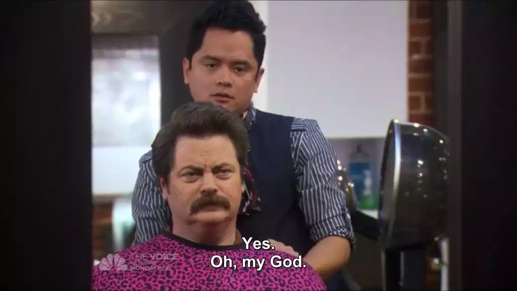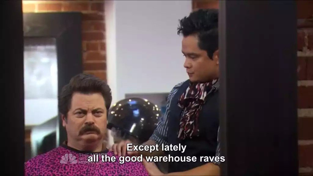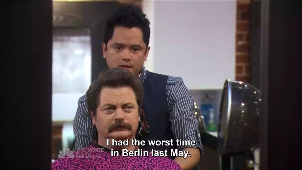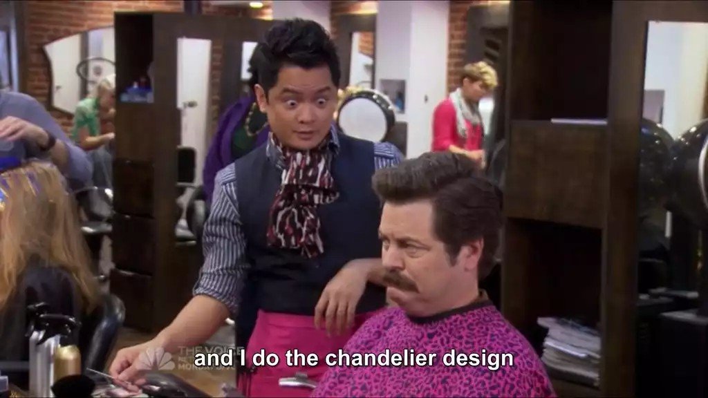 tfw Swanson will never wash it down with his cold beer as he enjoys his cigar in the indoor smoking room at the rock'n'roll themed bar with tables made of cut tree trunks that still smell faintly of wood, but that's probably pine scented polish