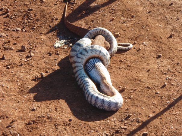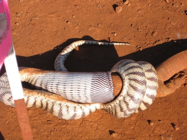 Except not only in Australia - there are many examples of Burmese Pythons eating Alligators in the everglades. Pic related; it's one that got ripped in half during the process.