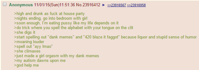 It was a tidbit I got from Tim Ferris in "4 Hour Body" a million years ago when I read it. Worked before, and indeed ever since. I mean think of it: I got my dingle-donger blown by a fat chick probably 10 years ago (it was so incredible that I still remember, also I'm an oldfag if you haven't guessed) and with nothing but her mouth, skill, wits and the backing of the Chaos Emeralds, she brought me to orgasm where I gleefully painted her digestive system with potential children.