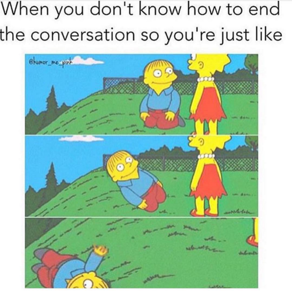 blk twt Flag larrallina (See more...) prev next random - Fav Favorite Comment ✖ PrevTop NextComment prev next Tags: Funny black twee When you don' t know how to end conversation 'it/ BE you' re just like ... +580 Views: 21648 Favorited: 40 Submitted: 12/20/2015 Share On Facebook -Favorite +Favorite Unsub from larrallina Subscribe to larrallina
