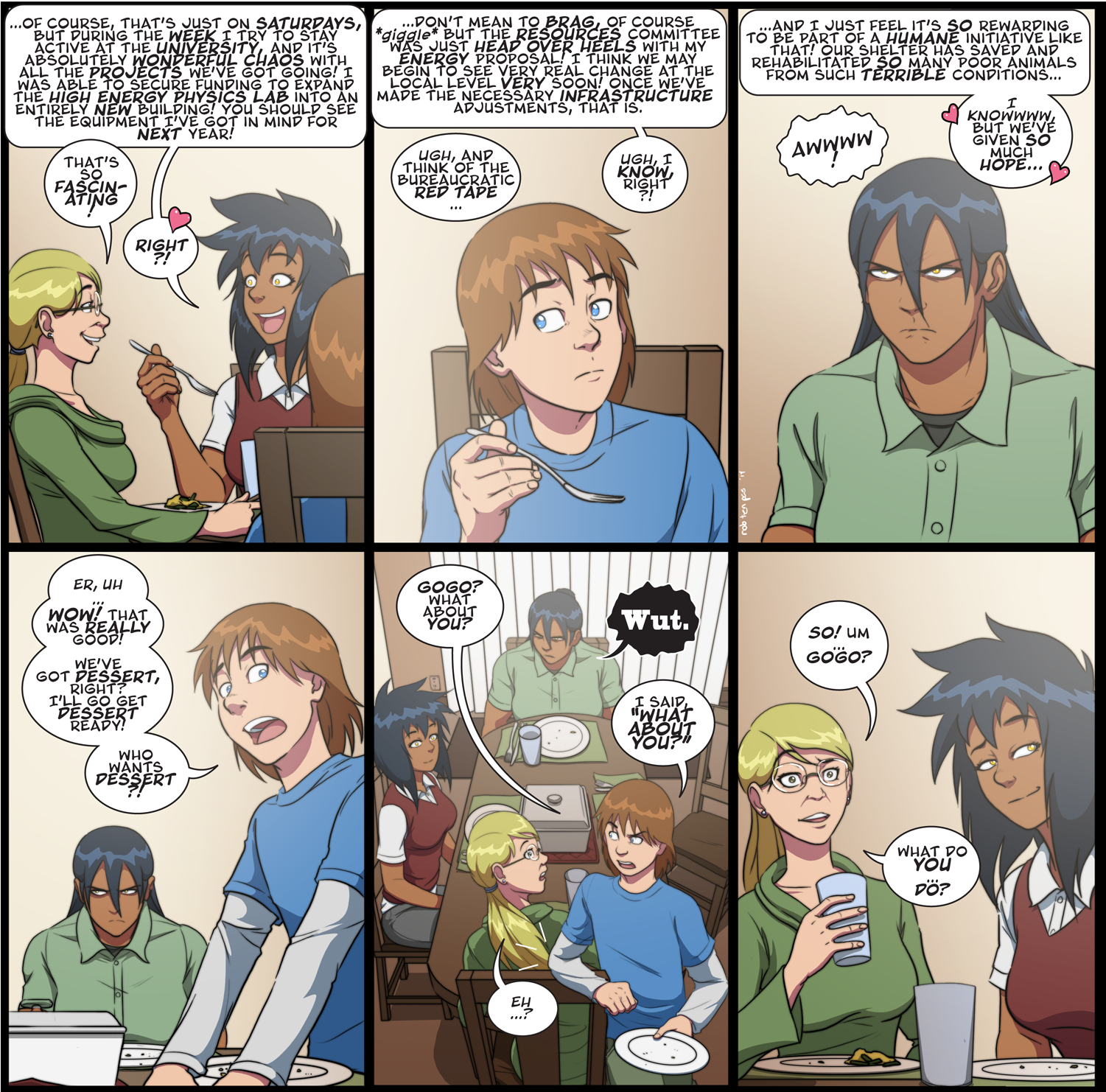 So, yep, actual character development here. What a novelty! It would appear that a severe lack of a mother figure in her own life has led Gogo to end up imprinting on Andy's mom, instead. And Didi, who is usually so helpful in forming these types of relationships, is unwittingly screwing everything up. I think we can all see things can only go downhill from here. Just how much downhill we'll have to wait until Friday to see, 'cause this is one long comic.