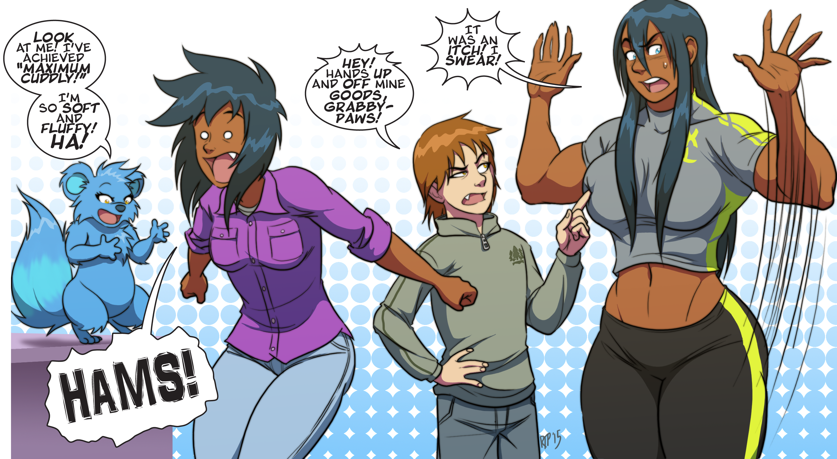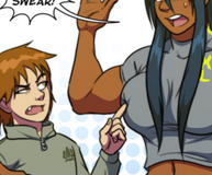 The big woman GoGo is..something. No one knows but her and DiDi (chick from the first comic.) Didi split from Gogo a while back and they started living together. At some point Andy's uncle employed Gogo and they got a house together. Most everything else is just their adventures. Also, recently Andy and Gogo got together and Didi's a lesbian. Or bisexual. More than likely bisexual