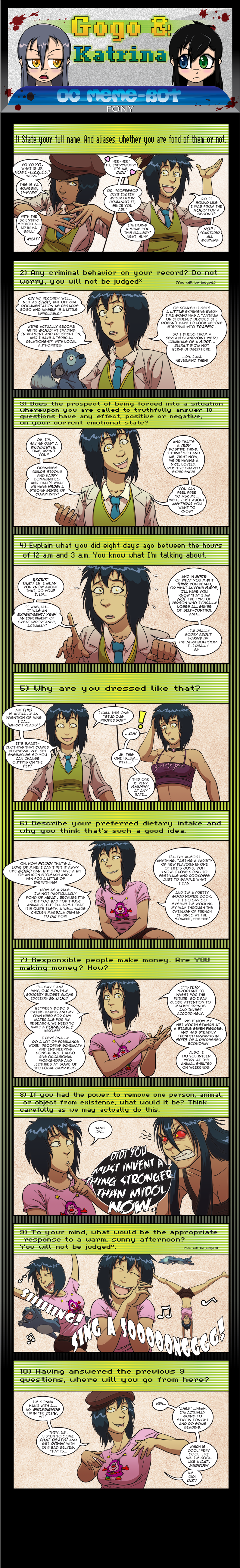 Also, just as a heads up, this is finals week, after which I go home for winter break. I'll do my best to stick to the schedule of extras on Monday and comics on Wednesday and Friday, but it's possible either or both of those things might screw me up. If that does happen, just hang in there, I'll make it right as soon as I can. This Friday especially, because I'm house-sitting, taking two finals, and seeing Star Wars that night AW YEAH .