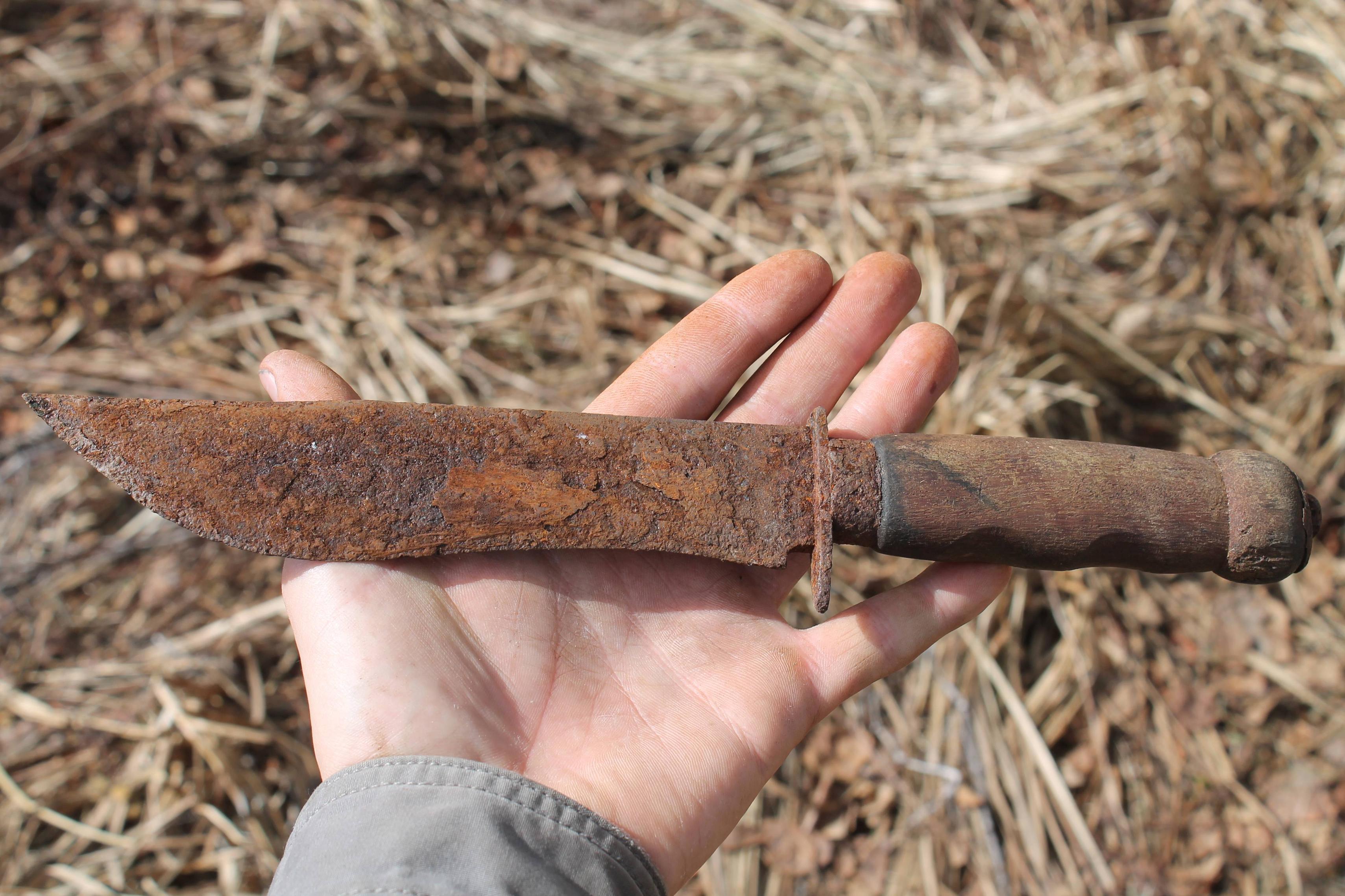 I'd say something like this might be salvageable with alot of work. i can't tell what the steel underneath that rust is like, but some sanding will probably find some nice steel somewhere underneath. The handle and guard I'd give up on though.