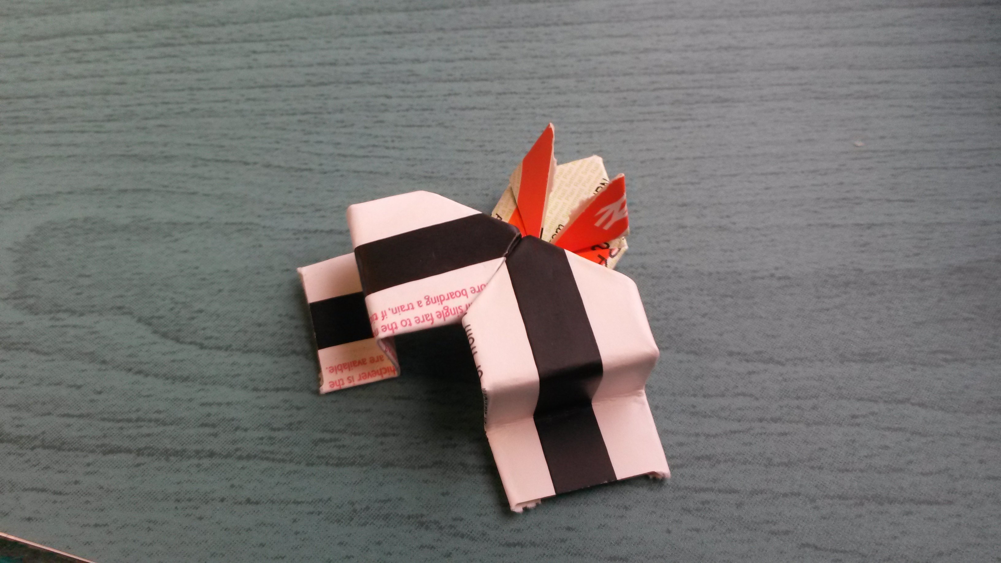Fold up the flap to make a leg