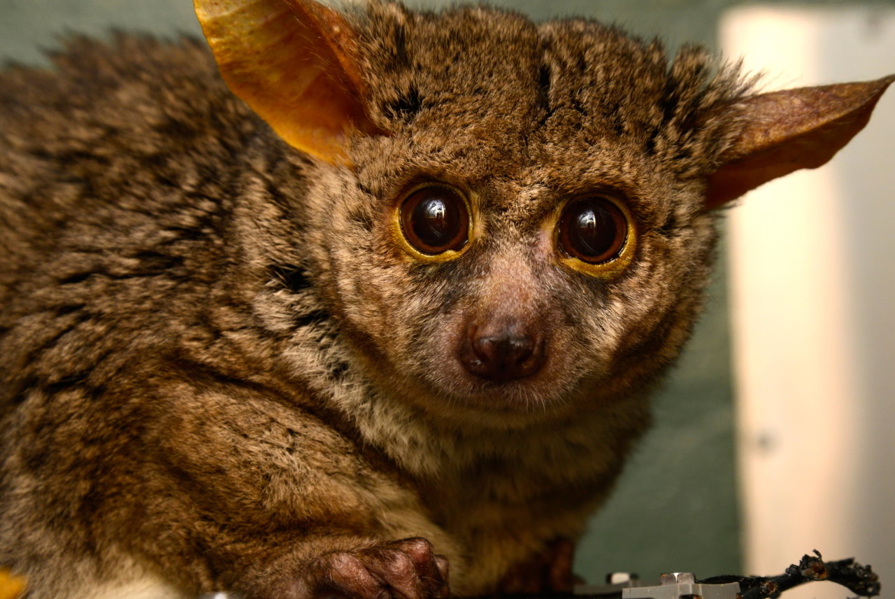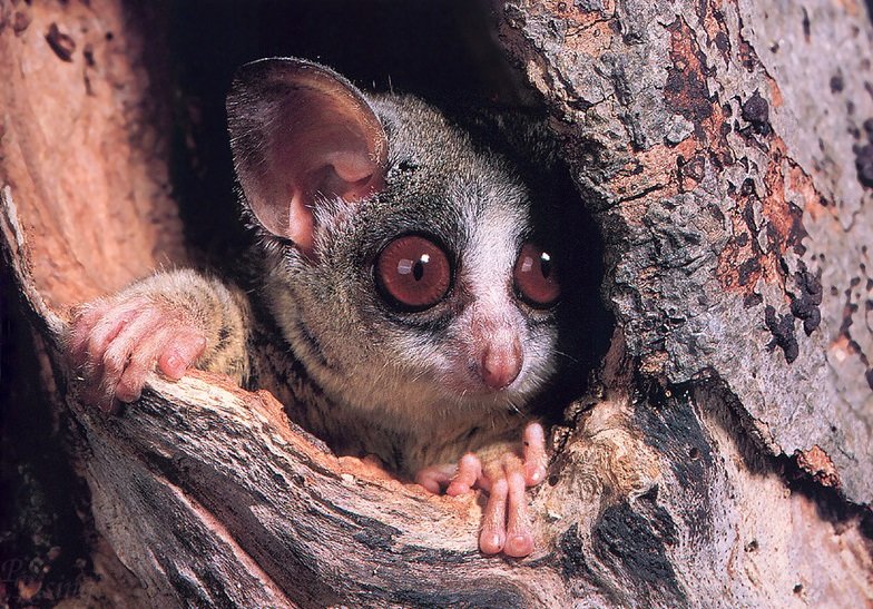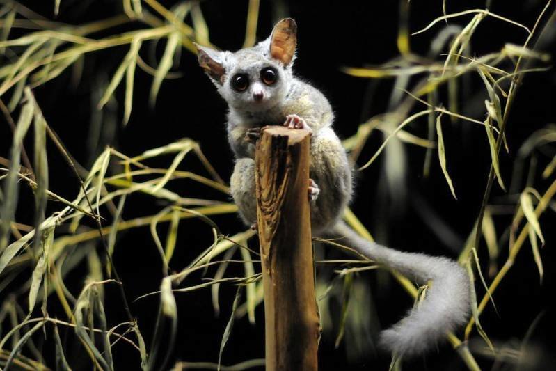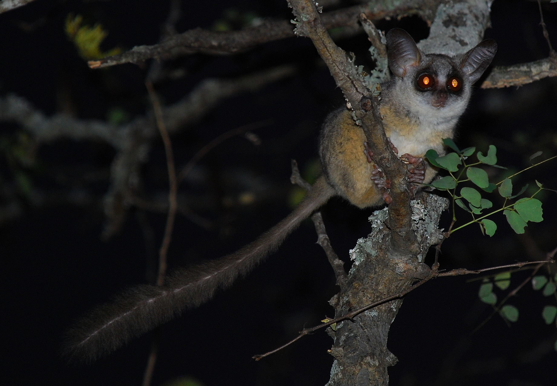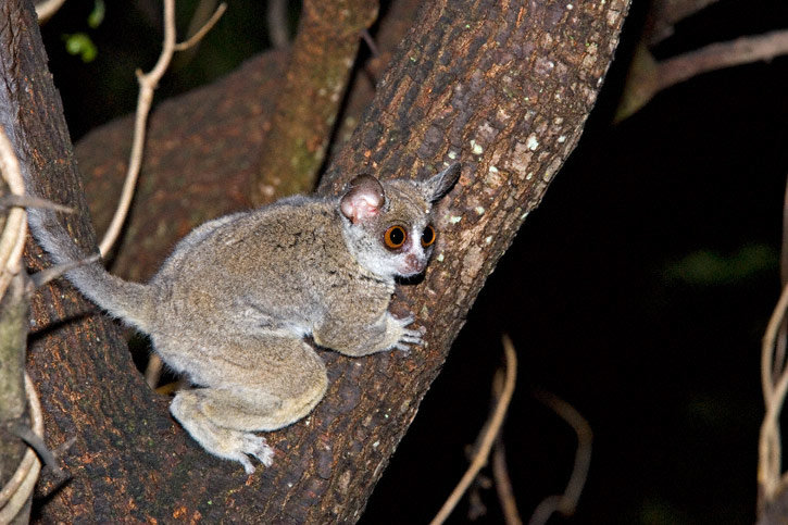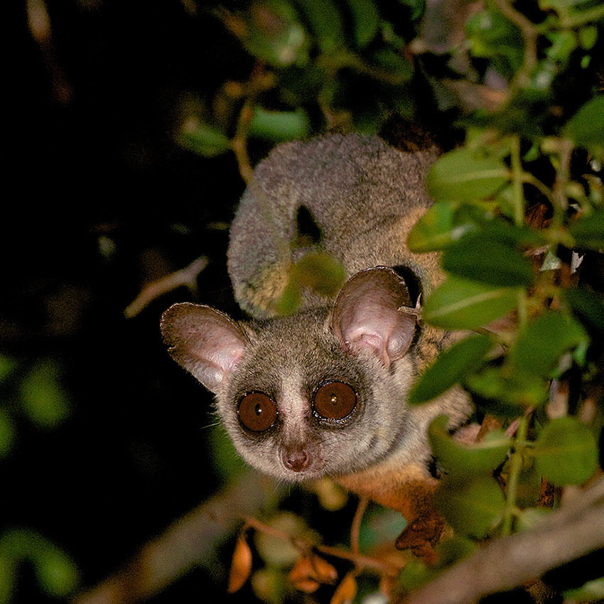 Extremely swift and agile, bush babies leap like squirrels from branch to branch and hop on their hind legs on the ground. They feed on gums, insects, fruit, and vegetable matter. Senegal bushbabies (Galago senegalensis) are familiar as pets. They are gregarious and spend much time grooming each other with their front teeth.