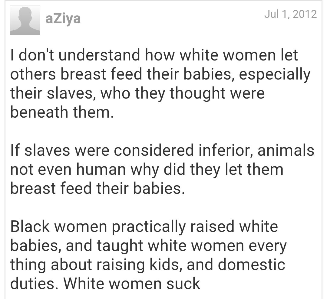 Oh, and everything black women who raised white babies knew about domestic duties they learned from white folks to begin with, with some exceptions such as milking cows, picking edible plants and how to make a fire(probably bank it too). Hell, considering Africans still used clay bowls and rocks to boil water, even something as basic as boiling water using metal implements would have been too advanced for an African of the time, not to mention the issue that Africans never figured out the correlation between dysentery and dirty water, so even fetching water had to be thought.