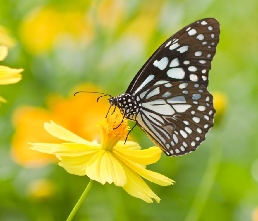 Butterflies have the typical four-stage insect life cycle. Winged adults lay eggs on the food plant on which their larvae, known as caterpillars, will feed. The caterpillars grow, sometimes very rapidly, and when fully developed pupate in a chrysalis. When metamorphosis is complete, the pupal skin splits, the adult insect climbs out and, after its wings have expanded and dried, it flies off. Some butterflies, especially in the tropics, have several generations in a year, while others have a single generation, and a few in cold locations may take several years to pass through their whole life cycle.