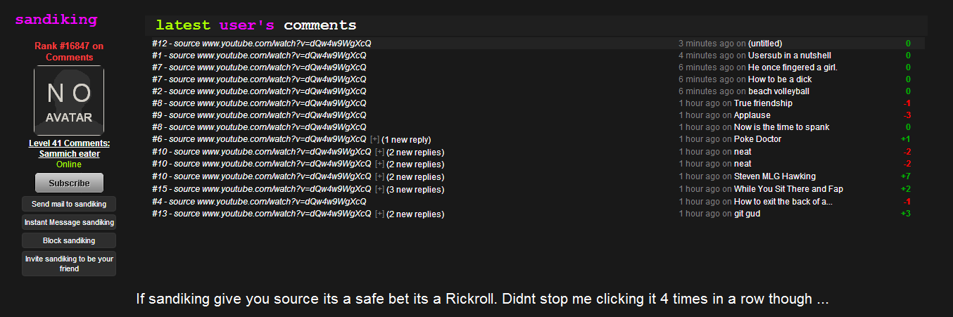 If sardining give you source its a safe bet its a Rickroll. Didnt stop me clicking it at times in a row though ...