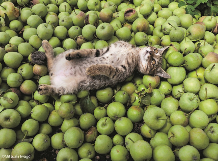 This cat fell into the apple