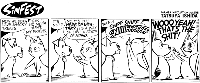 I don't wanna be that guy who's so fun at parties, but catnip isn't a herb of mystery to cats. It contains the same chemicals as dominant feline urine. This makes them go crazy as they are overwhelmed by the smells of a feline in heat