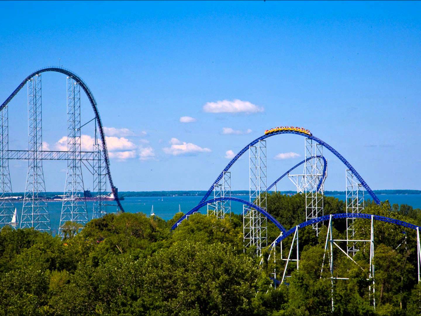 This one here is their tallest ride. It was the tallest coaster in the world at one point at just over 400ft. tall, dubbed the Stratocoaster, Top Thrill Dragster takes you for a ride where you're launched to over 120mph, over the 400ft. hill and corkscrew straight down! Top Thrill Dragster is built by Intamin. If you're wondering what the tallest coaster is, that goes to Kingda Ka in New Jersey, at 425ft.+. www.youtube.com/watch?v=LbN3NU4hIZg
