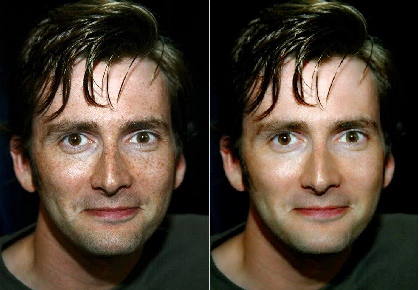 My (poor) attempt at what some famous (and not-so-famous) people might look like without their trademark freckles.