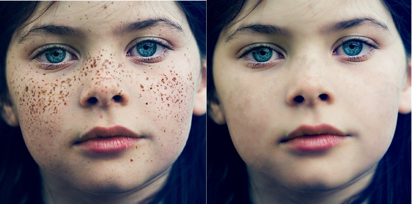 Freckles are predominantly found on the face, although they may appear on any skin exposed to the sun, such as arms or shoulders. Heavily distributed concentrations of melanin may cause freckles to multiply and cover an entire area of skin, such as the face. Freckles are rare on infants, and more commonly found on children before puberty. Upon exposure to the sun, freckles will reappear if they have been altered with creams or lasers and not protected from the sun, but do fade with age in some cases.