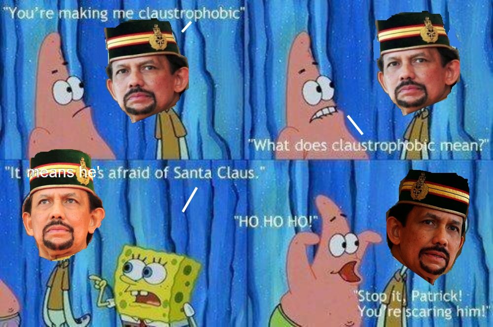 Claustrophobia Flag sunsetkid (See more...) prev next random - Fav Favorite Comment ✖ PrevTop NextComment (Enlarge) Sultan of Brunei threatens to jail Muslims for FIVE YEARS for celebrating Christmas www.express.co.uk/news/world/628698/Brunei-Christmas-Islam-Muslim-Hassanal-Bolkiah-Christian-Imam-Holiday-Celebrations-Jail it only took 2 hours in paint prev next Tags: Brunei | Hassanal | han solo | The Game | Fallout 4 | tags tlak of ... +64 Views: 6244 Favorited: 3 Submitted: 12/23/2015 Share On Facebook -Favorite +Favorite Unsub from sunsetkid Subscribe to sunsetkid