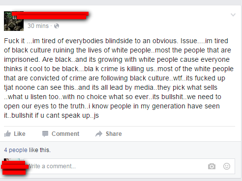 thinks it cool to De k crime is killing us.. most ofthe white people