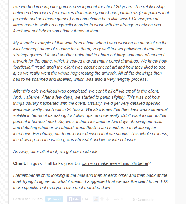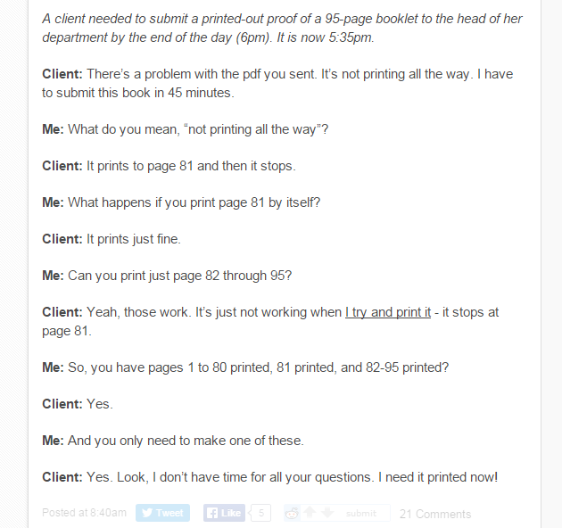 Clients From Hell Flag danster (See more...) next random - Fav Favorite Comment ✖ Top NextComment next Tags: clients | Hell | rage +289 Views: 14607 Favorited: 9 Submitted: 11/23/2015 Share On Facebook -Favorite +Favorite Unsub from danster Subscribe to danster