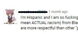 HI mean ACTUAL racism) from Blacks, Asians, and other Hispanics than I have from White people. As a matter of fact, White people