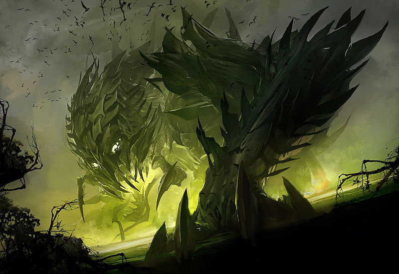 The iconic being from H.P Lovecraft's work. Cthulhu is one of many poweful cosmic entities, whose existance alone is beyond human comprehension, known as the Great Old Ones. Cthulhu was described as a giant groteque creature, with a human body, large dragon wings on his back, a whole octopus as his head, and with green scaley skin.